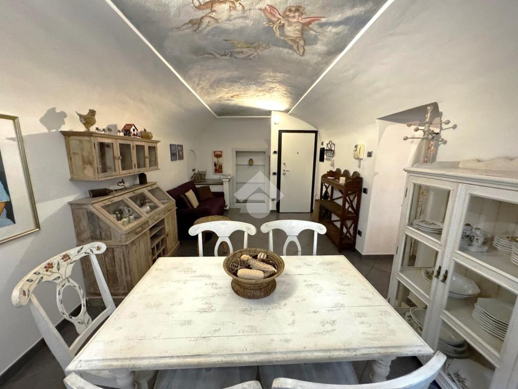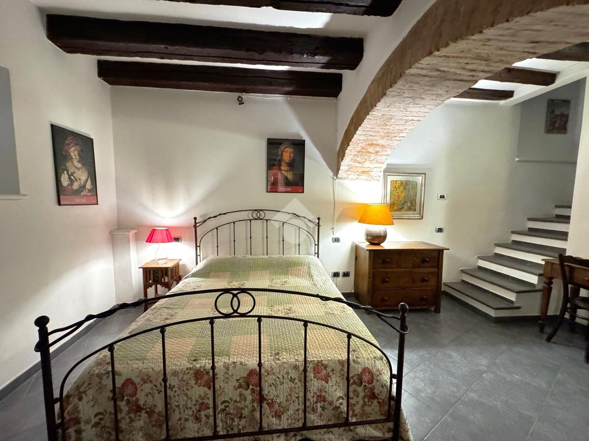 Al primo livello troviamo un soggiorno luminoso con soffitto affrescato ed una cucina separata. Al piano inferiore troviamo un bagno con doccia e la camera da letto matrimoniale che offre un rifugio intimo e confortevole.
