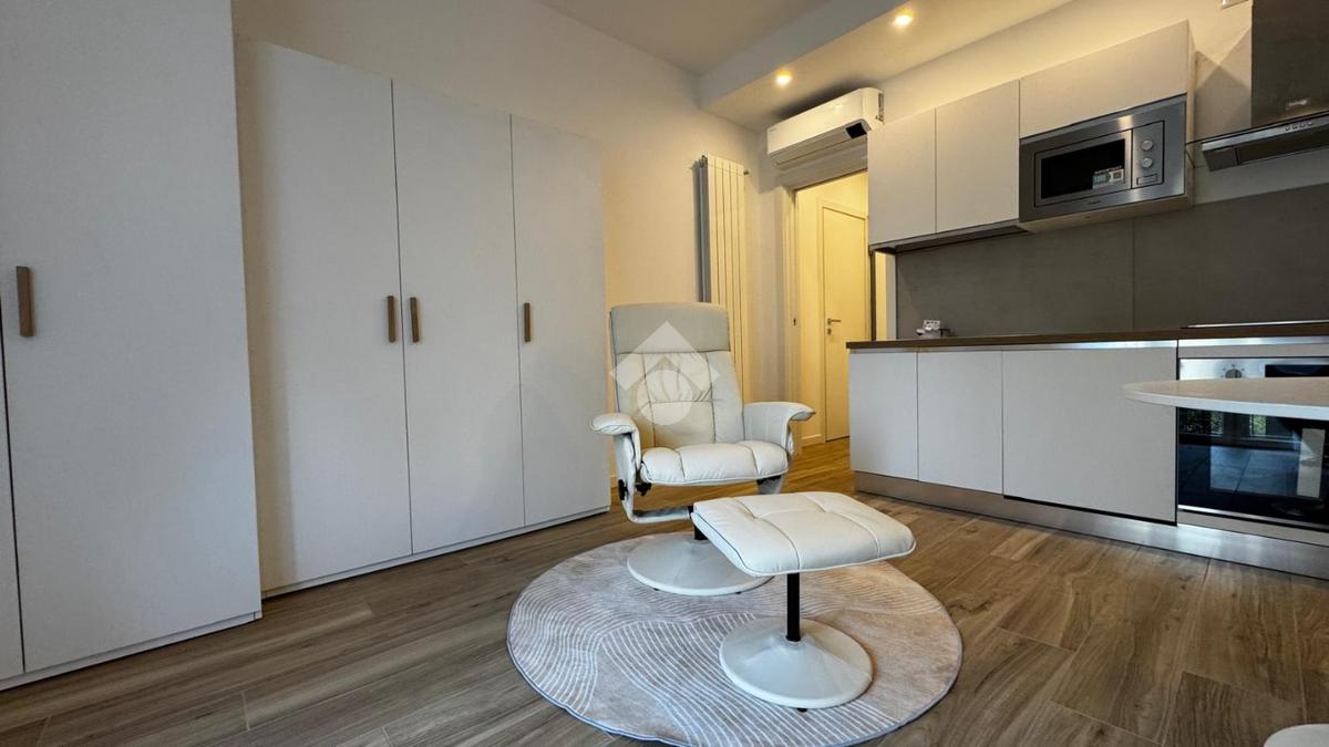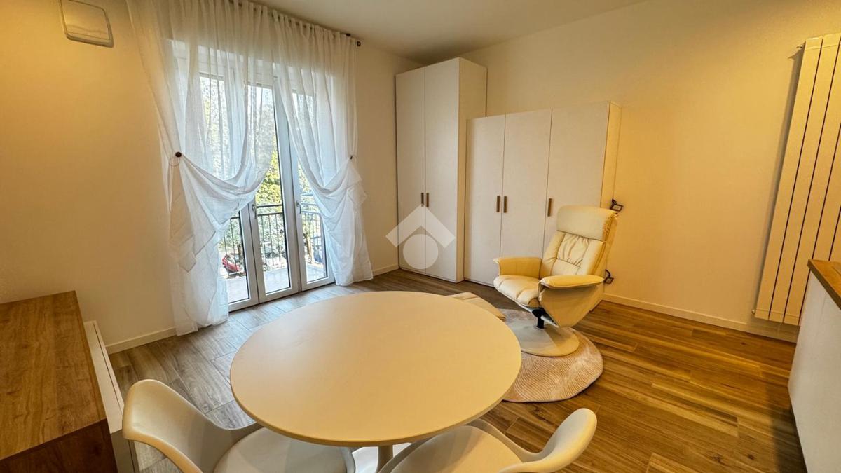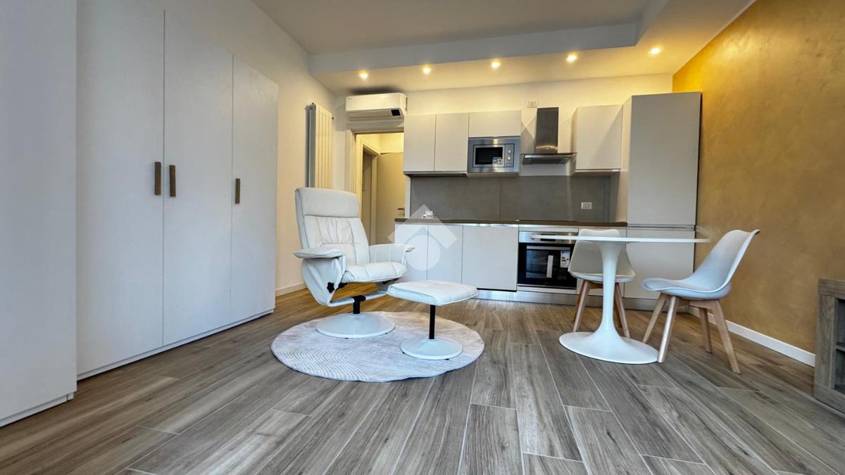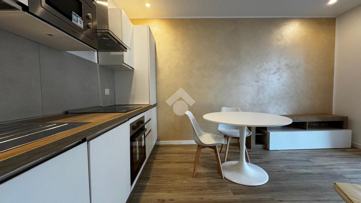 L'openspace è caratterizzato da una cucina a vista di recente installazione con piano cottura ad induzione, tavolo tondo con sedie e una comoda poltrona che si integra perfettamente con l'ambiente grazie ad un letto matrimonaile a scomparsa posto di fianco ad un armadio a due ante , ottimizzando così tutto lo spazio disponibile.