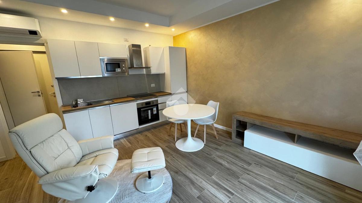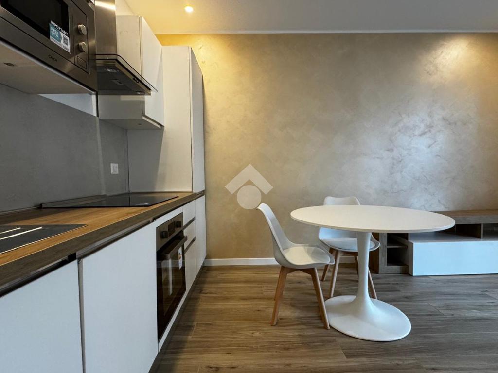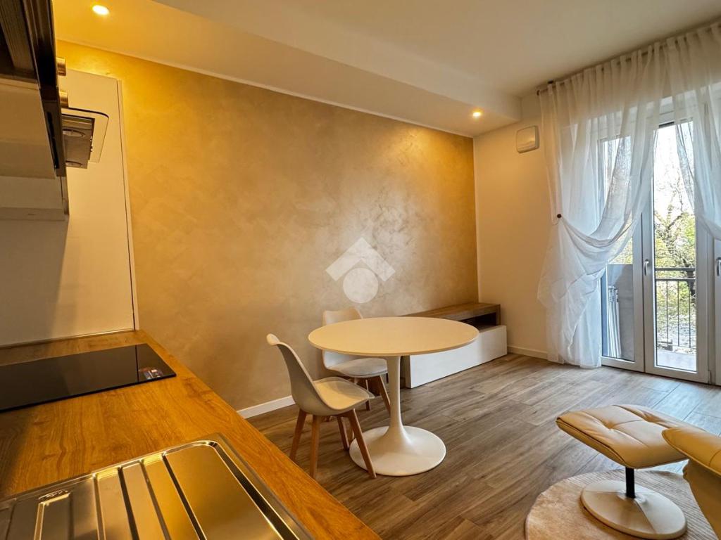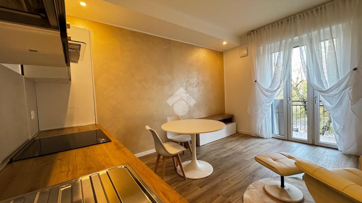 L'openspace è caratterizzato da una cucina a vista di recente installazione con piano cottura ad induzione, tavolo tondo con sedie e una comoda poltrona che si integra perfettamente con l'ambiente grazie ad un letto matrimonaile a scomparsa posto di fianco ad un armadio a due ante , ottimizzando così tutto lo spazio disponibile.