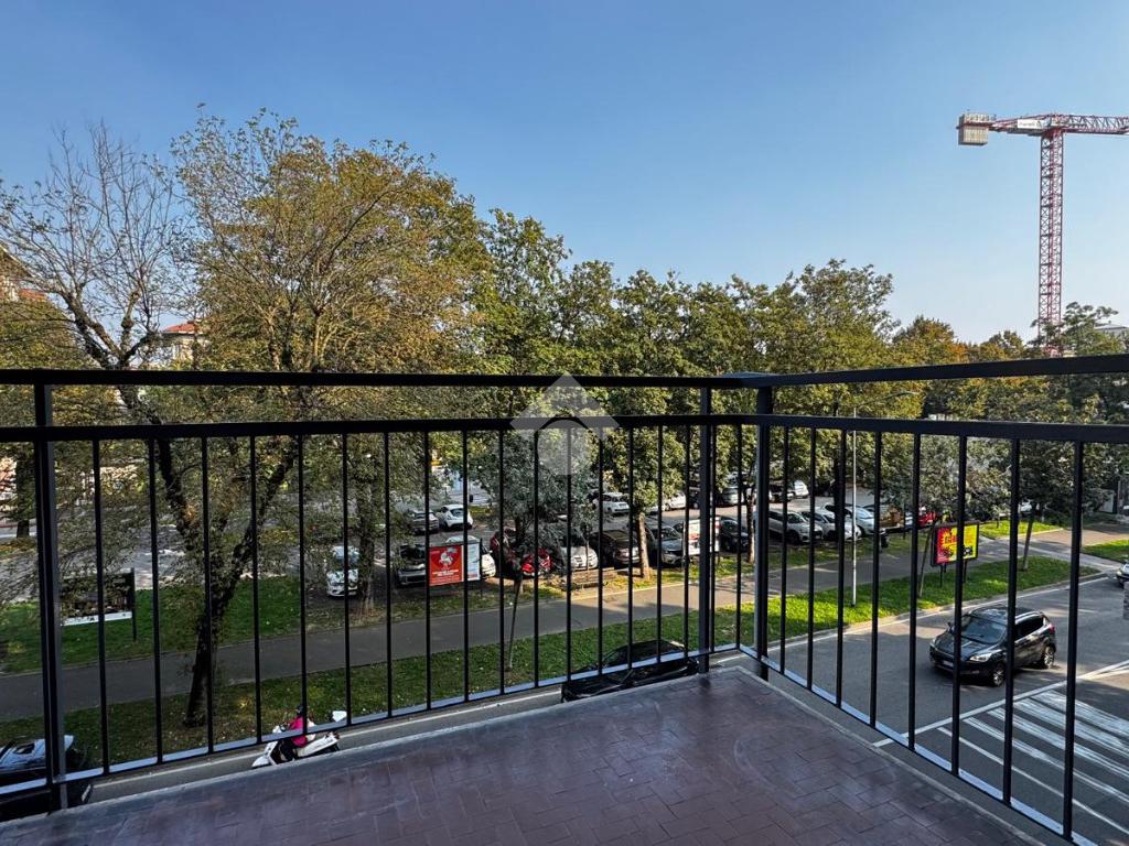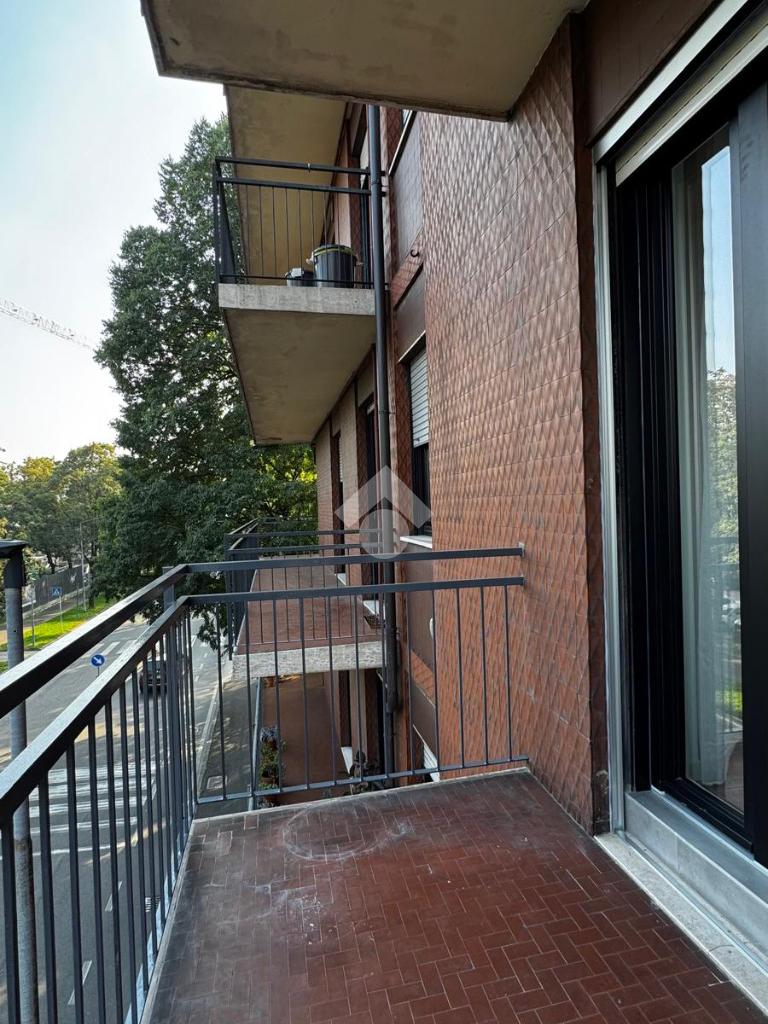 Un ampio balcone offre uno spazio esterno ideale per momenti di relax.