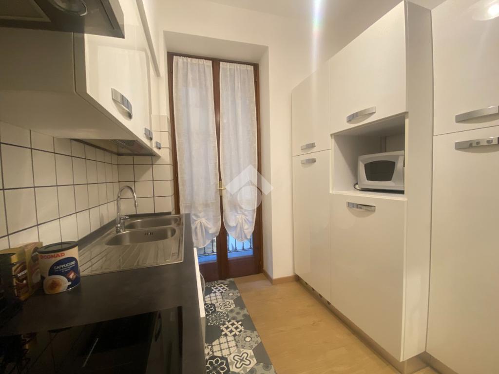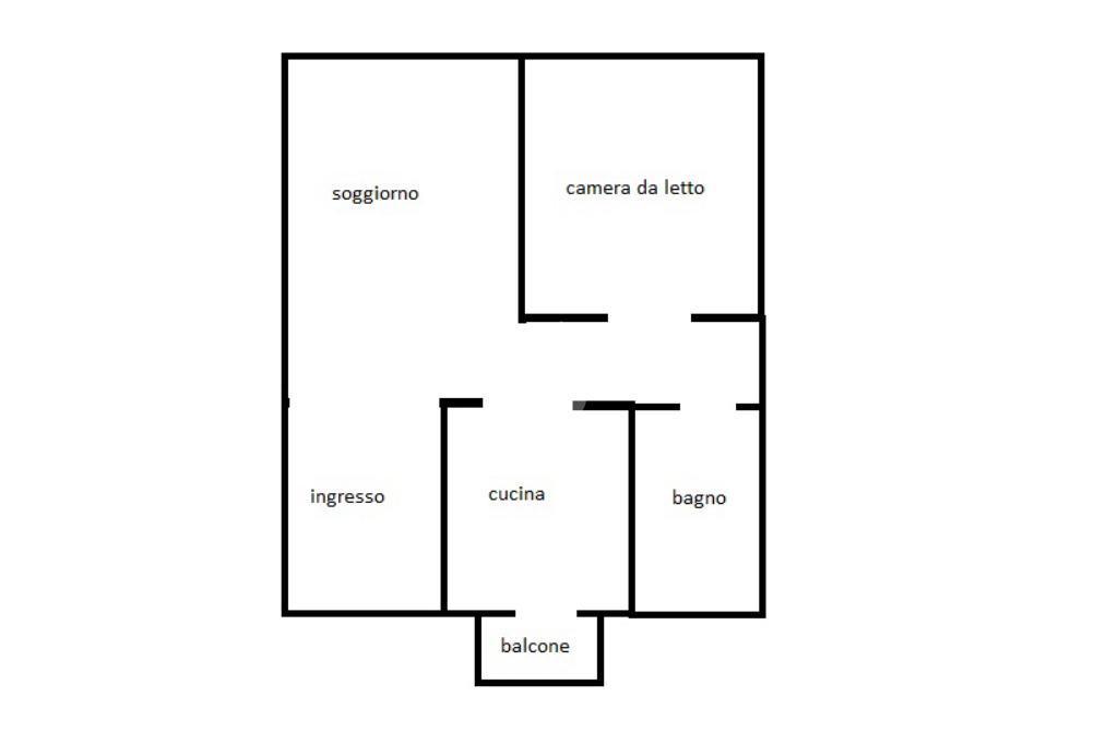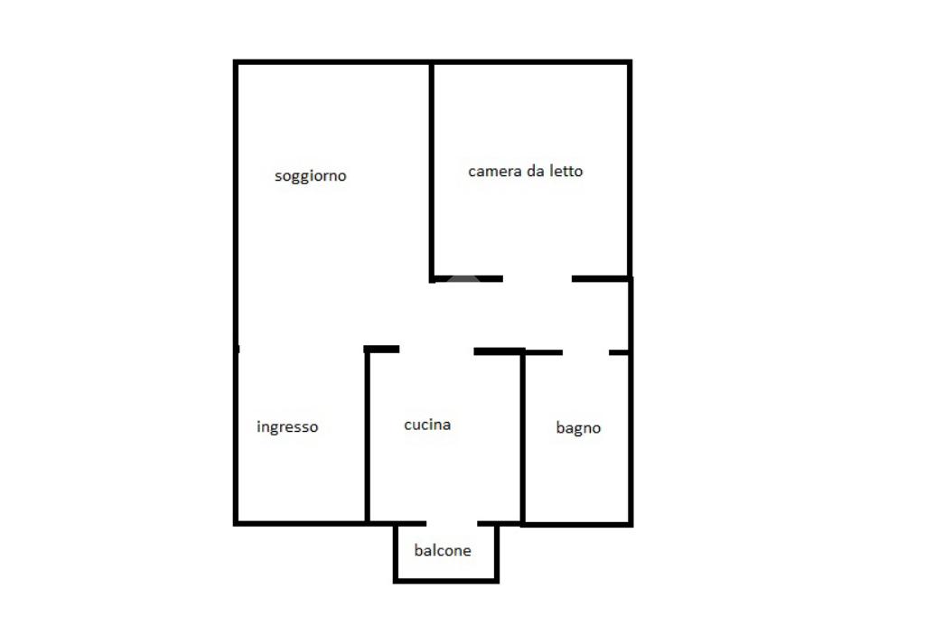 La soluzione è posta al primo piano di un piccolo contesto privo di ascensore ed è composta da ampio ingresso che conduce al soggiorno con affaccio sulla via, cucina con uscita sul balconcino, disimpegno notte, bagno finestrato con doccia ed ampia camera da letto matrimoniale.