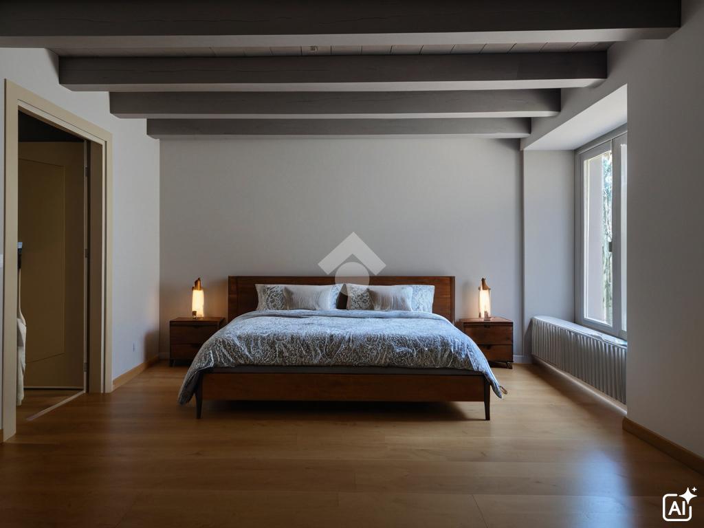 L'appartamento, caratterizzato da travi a vista, si compone di soggiorno con cucina a vista, ideale per chi ama spazi funzionali.