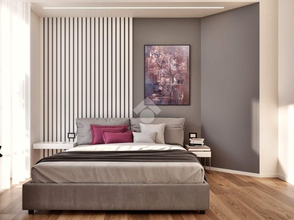 La camera matrimoniale, ampia e accogliente, è dotata di una pratica cabina armadio, mentre il bagno, finestrato e rifinito con materiali di pregio, offre un’ampia doccia in nicchia. Completa la proprietà un comodo box doppio in lunghezza.