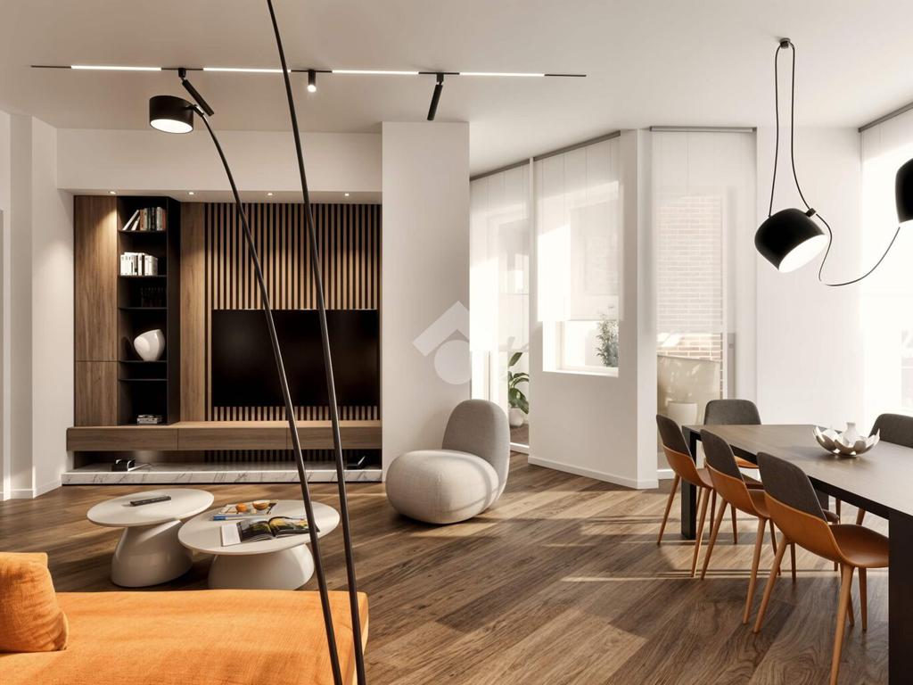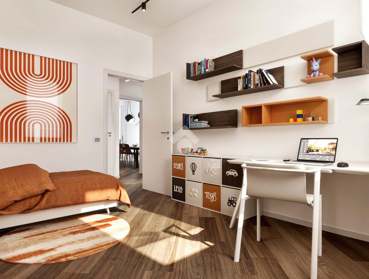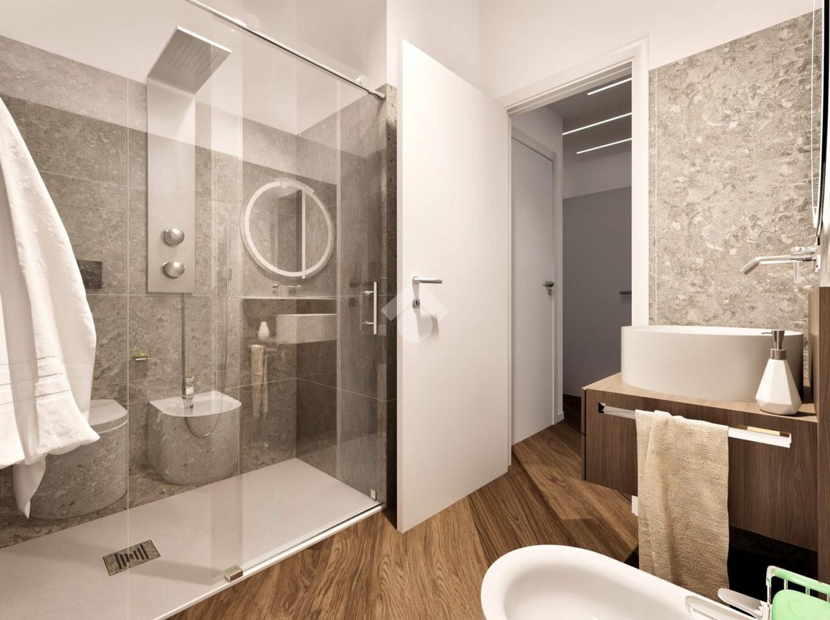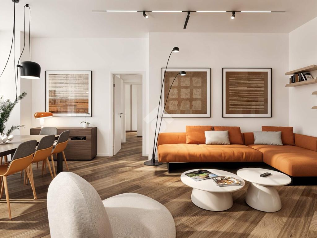 L’appartamento sarà dotato di ampia zona living con angolo cottura separato, due camere da letto, disimpegno, doppi servizi, comodo ripostiglio con attacco per la lavatrice e due balconi.